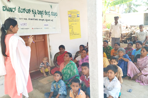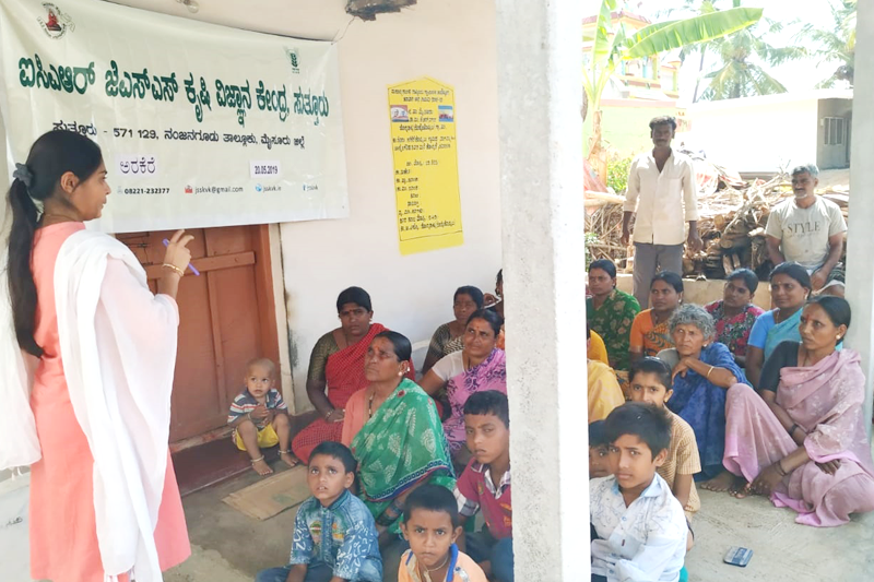 Training programme on Kitchen GardenTraining programme on Kitchen garden has been conducted at Arakere, K.R. Nagar Taluk on 20.05.2019 by Smt. Netravati Yettinimani, Scientsit (Home Science). In this programme importance of vegetables in health management was taught. Smt. H.V. Divya, Scientist (Seed Technology) explained about the seed production technologies on paddy and ragi. 38 farm women were present in the programme. |