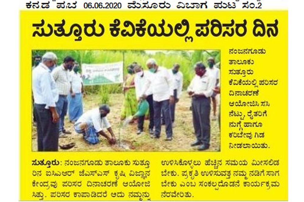 KVK in NewsWorld Enivironment Day Celebration news in Kannda Prabha on 06.06.2020 in Mysuru edition (Page No. 2) and also in Mysore Mithra paper. |