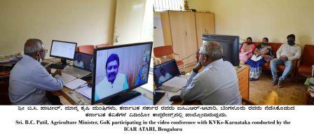Video Conference with Agril. Minister, GoKSri. B.C. Patil, Hon'ble Agriculture Minister, Govt. of Karnataka participating in video conference conducted by ICAR ATARI, Zone-XI, Bengaluru for all KVKs of Karnataka |