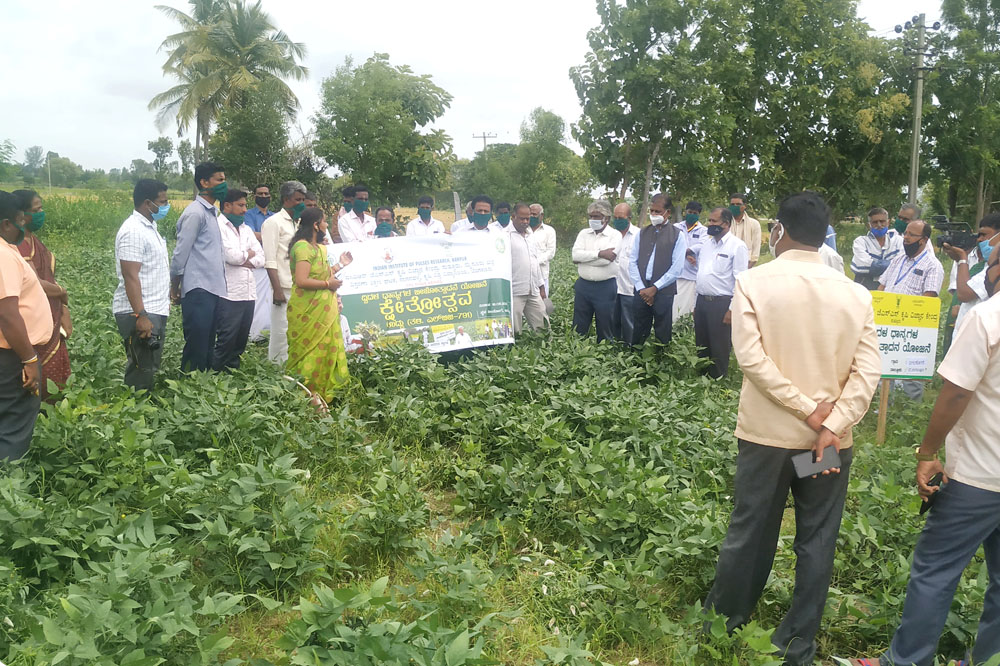 Field Day on BlackgramField day on Black gram under Production of seed hub on pulses project sponsored by IIPR, Khanpur has been conducted at Neelasoge, T. Narasiupra Taluk. The Director of Extension Dr. M. Bayregowda, Naganahalli, UAS, Bengaluru and offcials of Dept. of Agriculture were peresent. 48 farmers were witnessed the programme. |