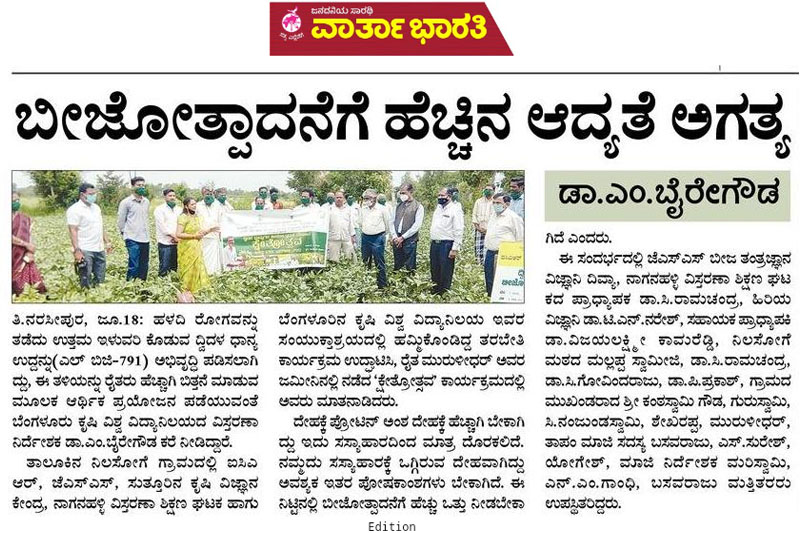 KVK in NewsThe field day on black gram seed production news appear in Andolana, Vartha Barathi, Vishwavani Dinapathrike, Kannada Prabha and Prajavani daily newspaper under Mysuru division. |