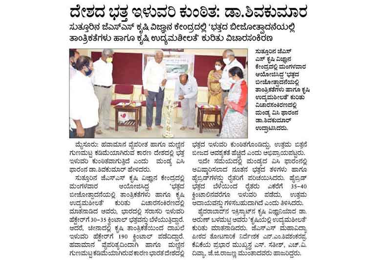 KVK in NewsWorkshop on Paddy Seed Production Technologies at ICAR JSS KVK, Suttur news at Andoalaya, Vijayavani |