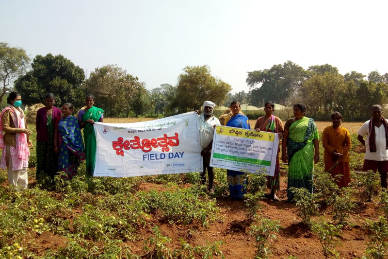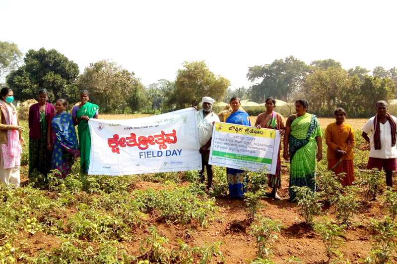 Kitchen garden field dayThe kitchen garden concept has been introduced to improve the health rural family. Under this programme the vegetable seed kit has been issued for 30 farm families to grow vegetables and leafy vegetables in their kitchen garden. To popularize the concept of kitchen garden among the other farm families a field day on kitchen garden has been conducted at Arakere, K.R. Nagar taluk on 26.12.2020. 30 farmwomen were participated in the programme. |