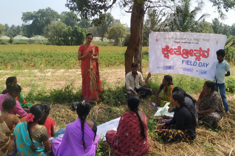 Field day on White Ragi var. KMR 340 value additionA field day on white ragi var. KMR 340 value addition has been conducted on 20.01.2021 at Arakere, K.R. Nagar Taluk. Value addition demonstration on ragi has been done during the field day. 20 farm women from different SHGs were participated. |