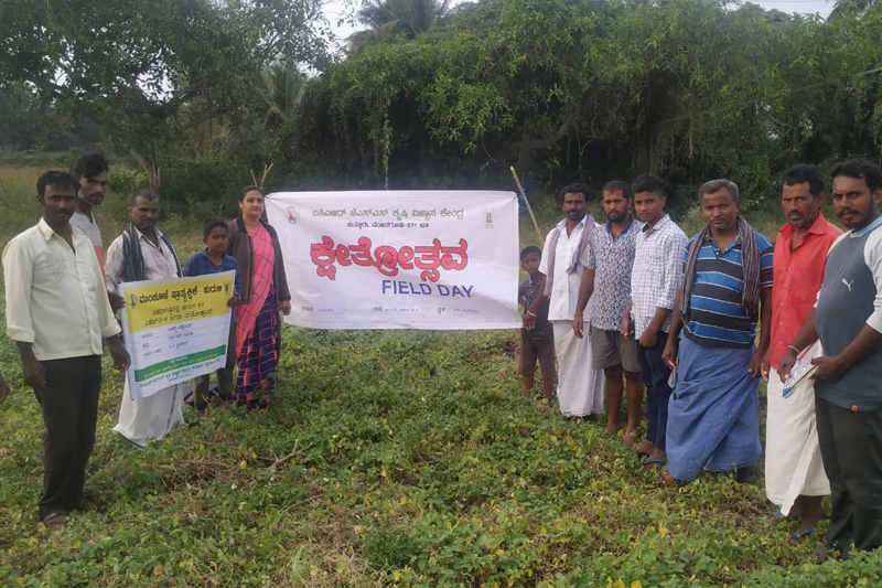 Horse gram field dayHorse gram variety PHG9 field day has been observed at Arakere, K.R. Nagar taluk on 17.12.2020. 30 farmer and farmwomen were participated in the programme and got knowledge about the new variety and package of practices. |