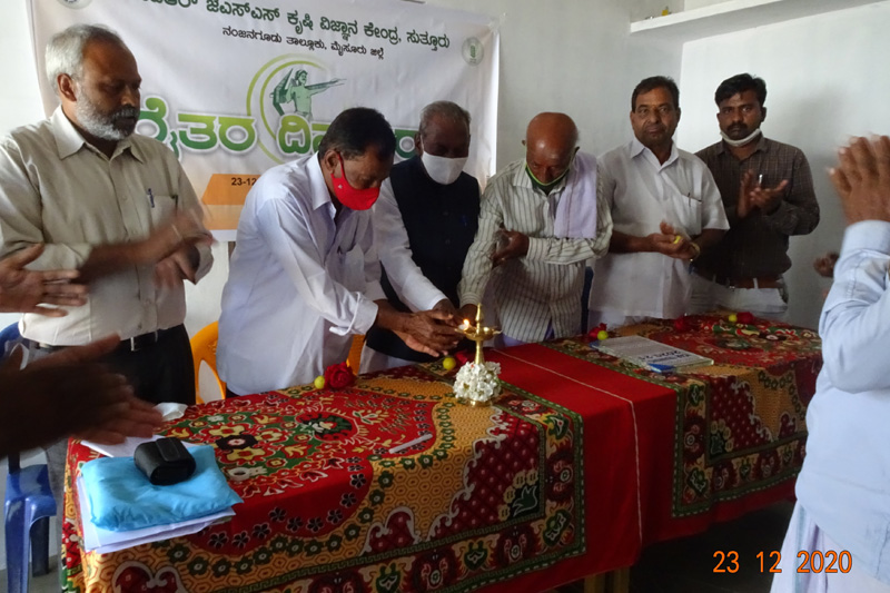 CADA training programmeA 3-day training programme for Cauvery Area Development Authority (CADA) farmers on IPM and ICM of various crops have been conducted on 27-19 December 2020 at JSS Krishi Vigyan Kendra, Suttur. 32 Farmers from T. Narasipura and Nanjangud taluk have benefited the programme. |