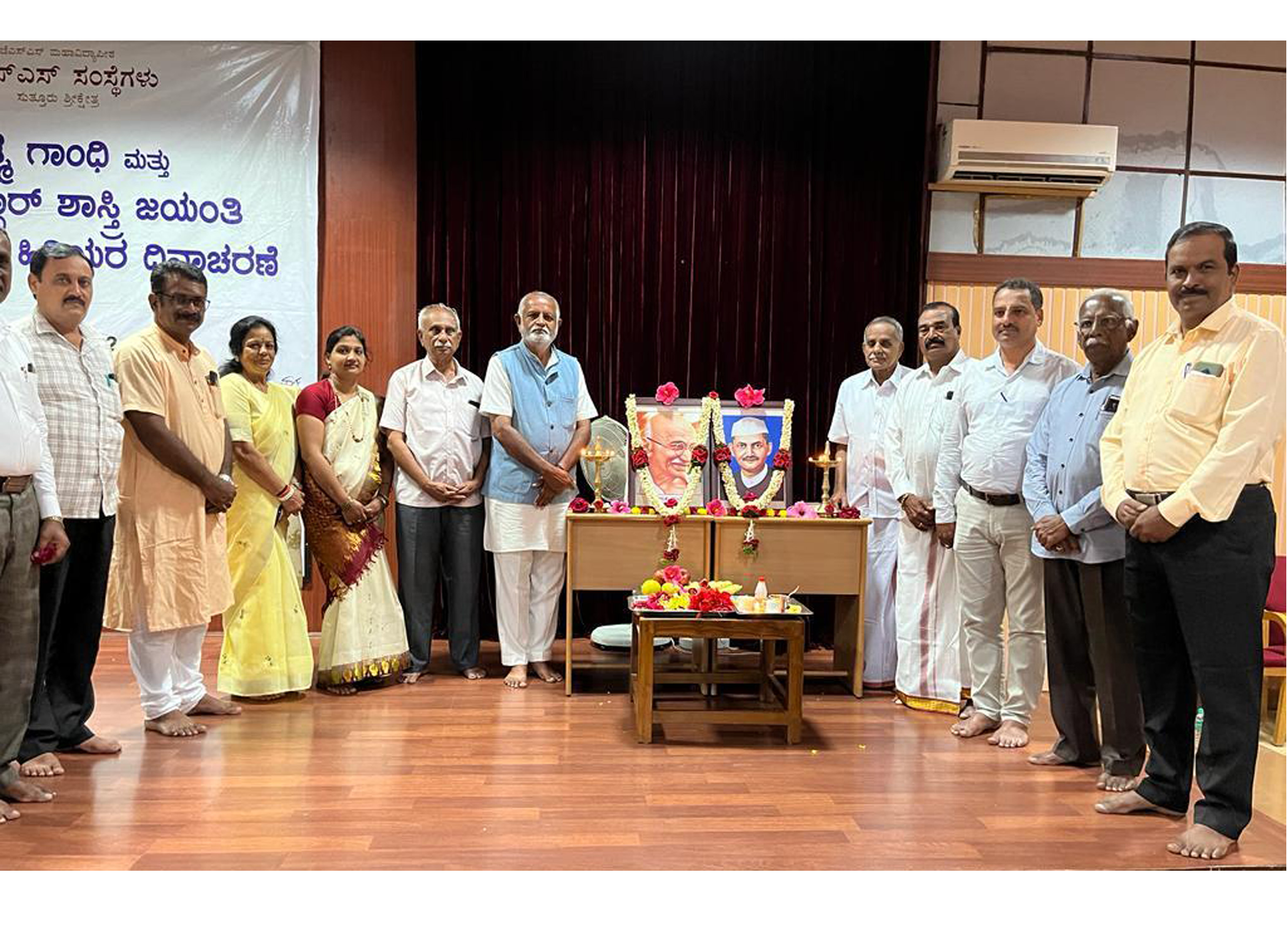 Celebration of Gandiji and Lalbahadur Shastriji JayanthiOn 2nd October 2022 Mahathma Gandiji, Lalbahadur Shastriji Jayanthi and Senior Citizens day has been celebrated at Allamaprabhu Auditorium, JSS INsitutions, Suttur. Dr. K. Kalachennegowda, Former Principal, Maharaja College, Mysuru addressed the gathering about the biography of Mahathma Gandhiji and Lalbahadur Shastriji. More than 120 staff members of JSS Insitutions and ICAR JSS Krishi Vigyan Kendra staff were participated in the programme. |