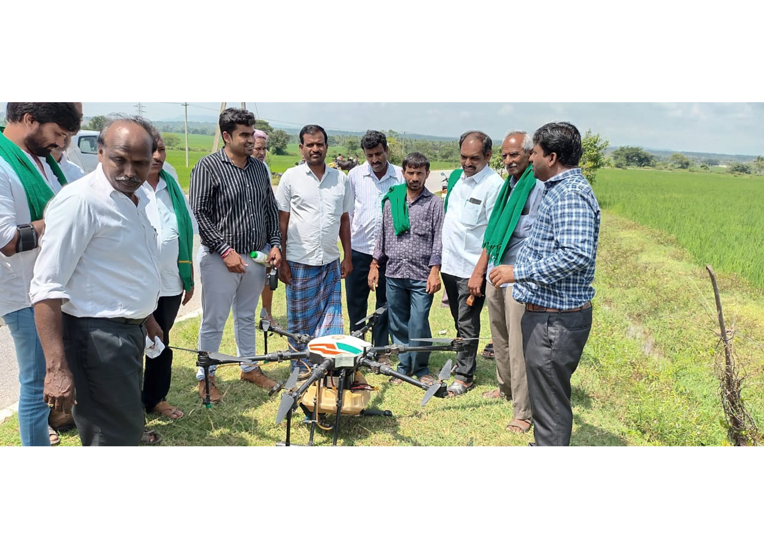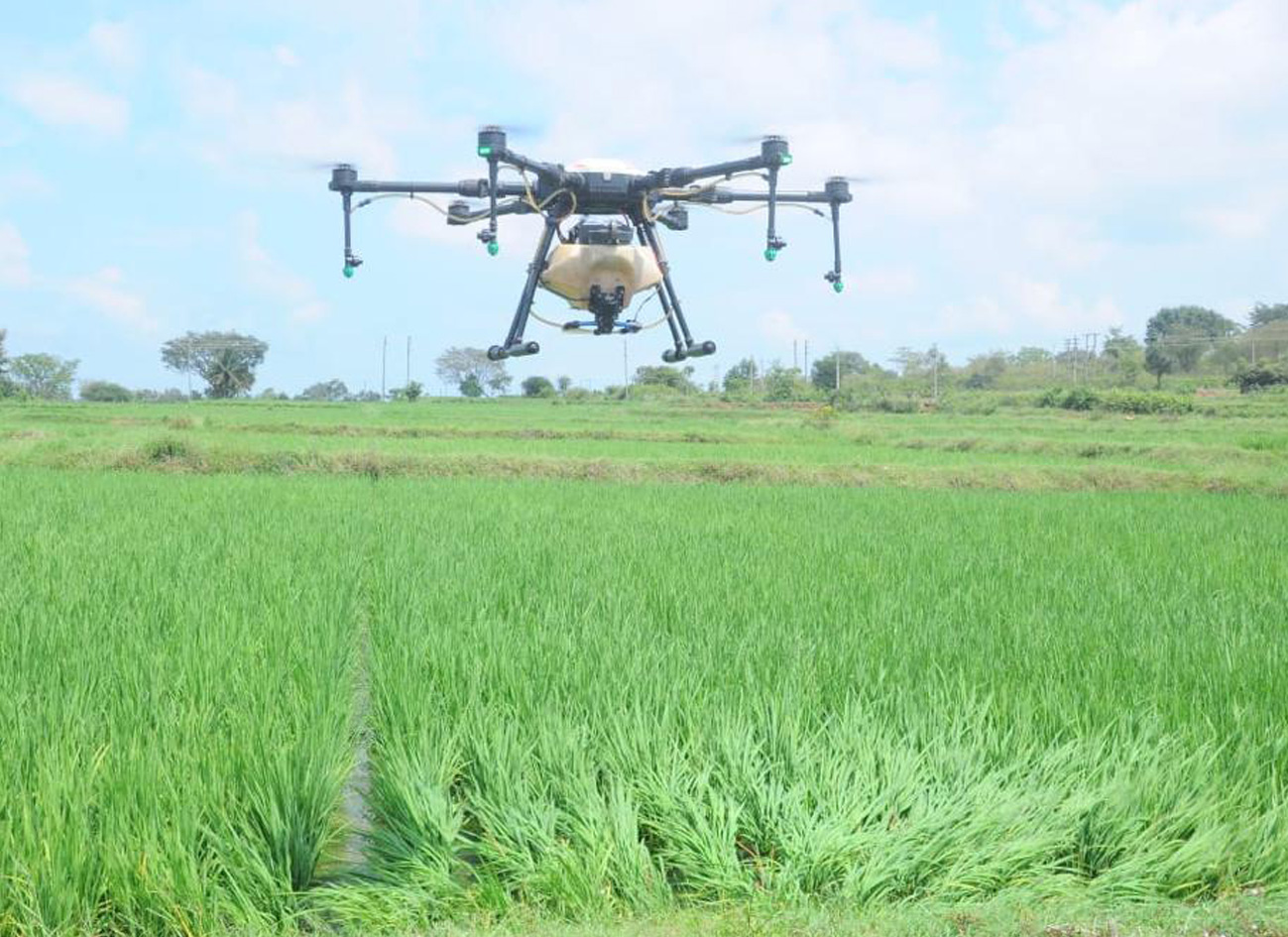 Demonstration on srapying of Nano Urea through dronsICAR JSS KVK, Suttur, Mysuru has organized a demonstration on “Use of Drones in Agriculture”. Mr. Munish, the Chief Executive Officer of the Drone Company informed in detail about the use of drone of Multiplex Company by the farmers of the villages around KVK who participated in this program. Farmers were sensitized about the use of drones by conducting a demonstration of nano-urea spraying using drones in the paddy demonstration field of KVK. |