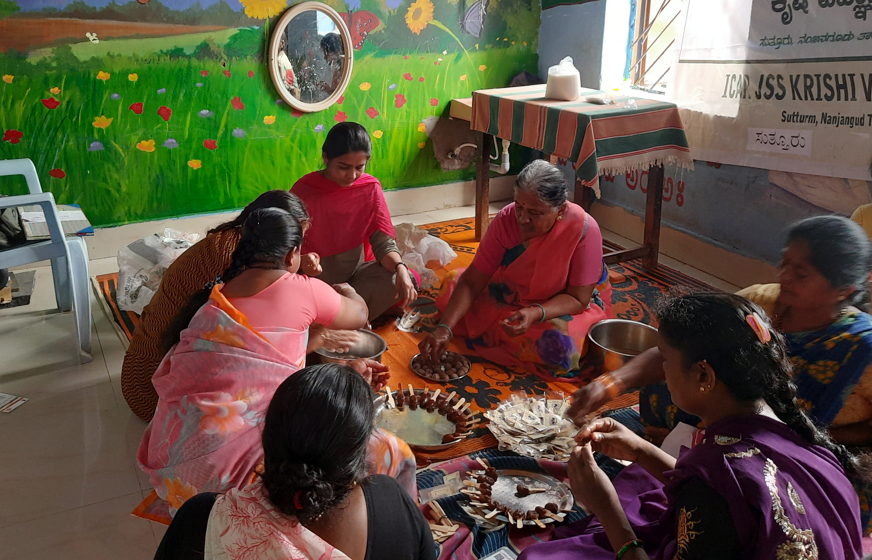 Method demonstration on Tamarind value additionOn 21st October 2022, method demonstration was conducted on Tamarind value added products to SHG women at Hulyalu, Hunsur taluk. Mrs. Netravati Yattinamani, Scientist (Home Science), ICAR JSS KVK Suttur demonstrated the tamarind value added products mainly Tamarind lollypop, Tamarind kuttunde and Tamarind candy. Critical inputs, packing and labels were provided to the SHG women. |