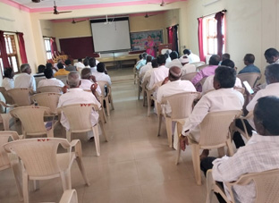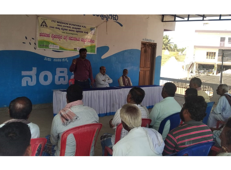 Climate smart agriculture practicesTraining programme on climate smart agriculture practices in paddy has been organized on 10.01.2023 at Hulimavu, Nanjangud taluk in collaboration with MYKAPS, Mysuru. During the programme Sri. Shamaraj, Scientist (Agronomy) explained about 7 steps for climate smart agriculture practices for paddy growing. That is soil preparation before rising crop by plouging and leveling. Selection of seed played a vital role for good crop. Manuring stage at different stages of crop, water management, weeding and harvesting techniques were taught. 25 farmers were particpated in the programme. |