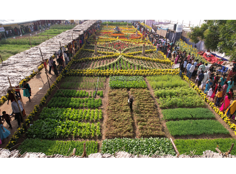 Krishimela - Live cropsKrishimela (Technology Week) is popularly known as “Krishi habba”. Demonstrations of traditional and modern farming practices were arranged to introduce farmers to important technologies in the field of agriculture. About 150 crops viz., cereals, pulses, oilseeds, commercial crops and fodder crops, hydroponics under soilless cultivation, horticulture crops including aero-phonics method and exotic vegetables, drip irrigation and sprinkler irrigation systems were demonstrated. |