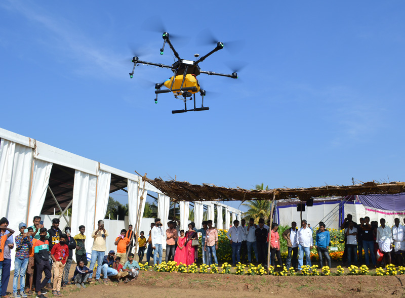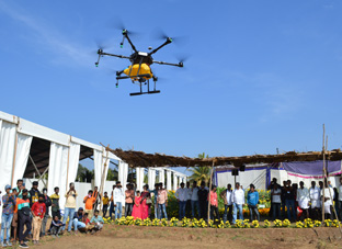 Krishimela - Drone DemosDrones can be used as a new technology to save farmers' labor, time, adequate chemicals spraying, sowing, crop survey and maintaining the health of the crop. Demonstration of the operation of the drone was organized at the Krishi Mela every hour for the farmers and spectators who gathered at the Krishi Mela. |