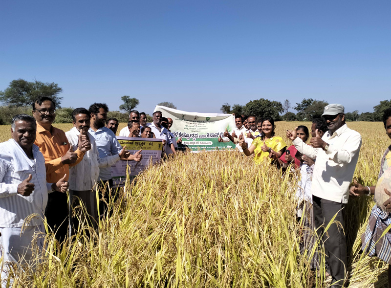 Field – Paddy var KMP 220The field day of KMP 220 was held on 15.12.2022 at Dananayakanapura, T. Narasipura Taluk, Mysuru district in collaboration with Dept. of Agriculture and ATAMA, Mysuru. The farmers of this region are mostly growing paddy variety Jyothi. This variety is prone to disease and gives low yield. The University of Agricultural Sciences (UAS), Bengaluru released a new variety KMP 220. Farmers opined that this variety will give more grass and yield than the variety Jyoti with less disease, which will reduce the cost to the farmers and get a better profit. Smt. H.V. Divya advised to famers to select seedlings from good plants and use the seed for the next season. More than 40 farmers and farm women participated in the event. |