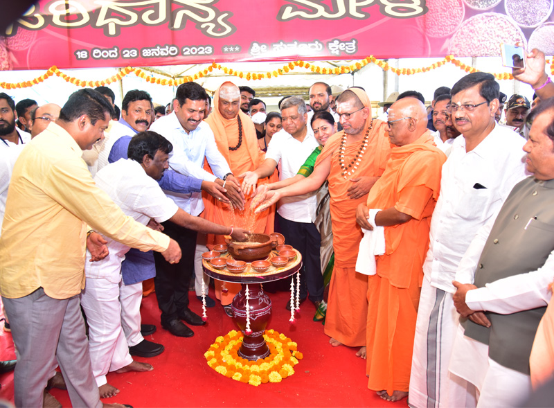 ಕೃಷಿಮೇಳ 2023ಆದಿಜಗದ್ಗುರು ಶ್ರೀ ಶಿವರಾತ್ರೀಶ್ವರ ಶಿವಯೋಗಿಗಳವರ ಜಾತ್ರಾ ಮಹೋತ್ಸವ ಅಂಗವಾಗಿ ಜನವರಿ ೧೮ ರಿಂದ ೨೩ ರವರೆಗೆ ಆಯೋಜಿಸಿದ್ದ ಕೃಷಿಮೇಳವನ್ನು ಪರಮಪೂಜ್ಯ ಶ್ರೀ ಶಿವರಾತ್ರಿ ದೇಶಿಕೇಂದ್ರ ಮಹಾಸ್ವಾಮಿಗಳವರ ದಿವ್ಯಸಾನ್ನಿಧ್ಯದಲ್ಲಿ ಹಾಗೂ ಹರಗುರು ಚರಮೂರ್ತಿಗಳ ಸಮ್ಮುಖದಲ್ಲಿ ಶ್ರೀ ಬಿ.ಸಿ. ಪಾಟೀಲ್, ಕೃಷಿ ಸಚಿವರು, ಹಾಗೂ ಶ್ರೀ ಜಗದೀಶ್ ಶೆಟ್ಟರ್, ಶ್ರೀ ಬಿ.ವೈ ವಿಜಯೇಂದ್ರ, ಡಾ. ಯತೀಂದ್ರ ಸಿದ್ದರಾಮಯ್ಯ, ನಿರಂಜನ್ ಕುಮಾರ್, ಡಾ. ವಿ. ಲೋಕೇಶ್ ಪೂಜಾರಿ ಇತರ ಗಣ್ಯಮಾನ್ಯರ ಉಪಸ್ಥಿತಿಯಲ್ಲಿ ಉದ್ಘಾಟನೆಗೊಂಡಿತು. |